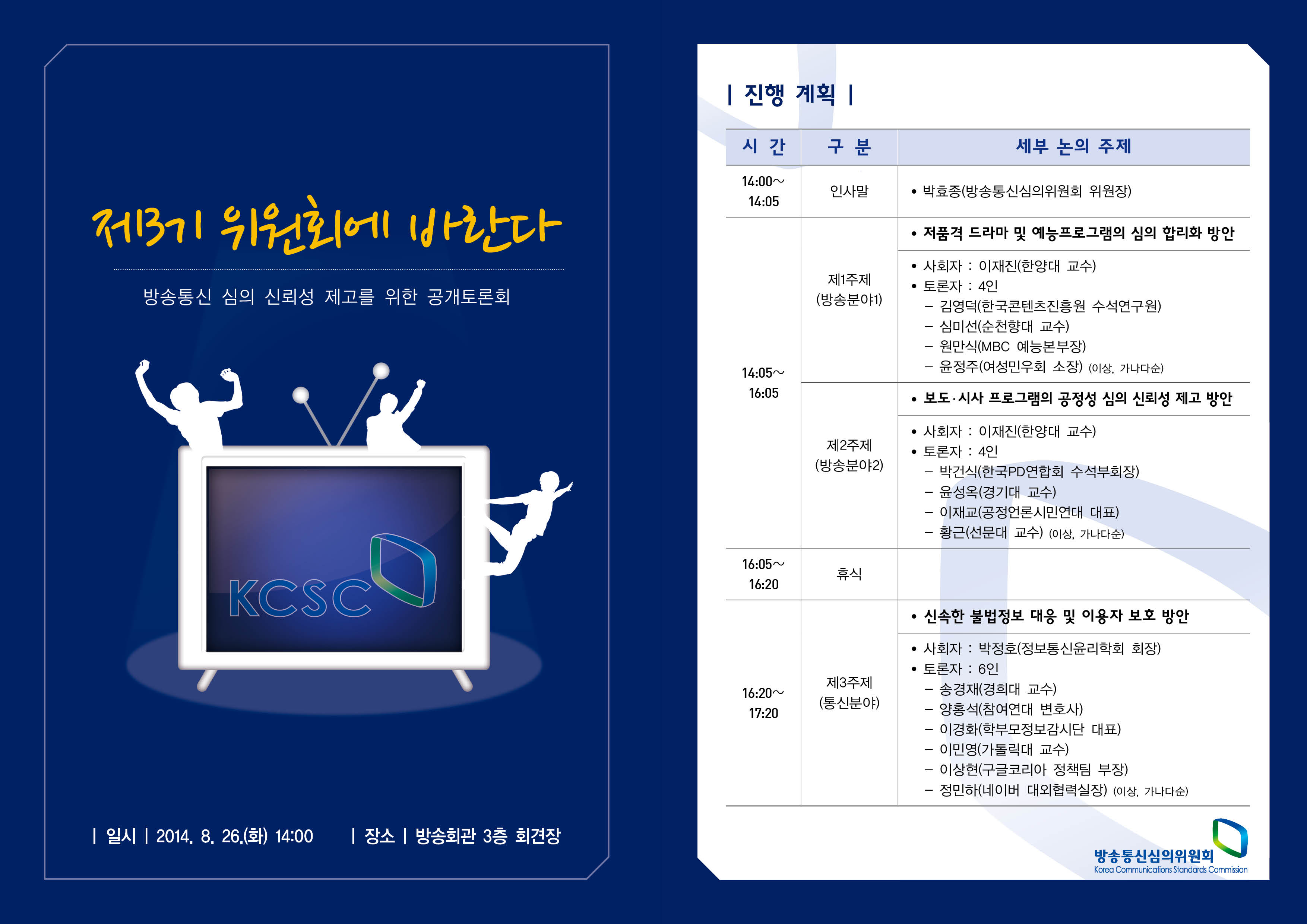 1) 제목: 방송통신심의위원회 '방송통신 심의 신뢰성 제고를 위한 공개토론회'