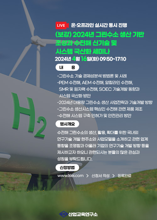 1. 행사명 : (보강) 2024년 그린수소 생산 기반 조성과 수전해 신기술 및 시스템 국산화 세미나