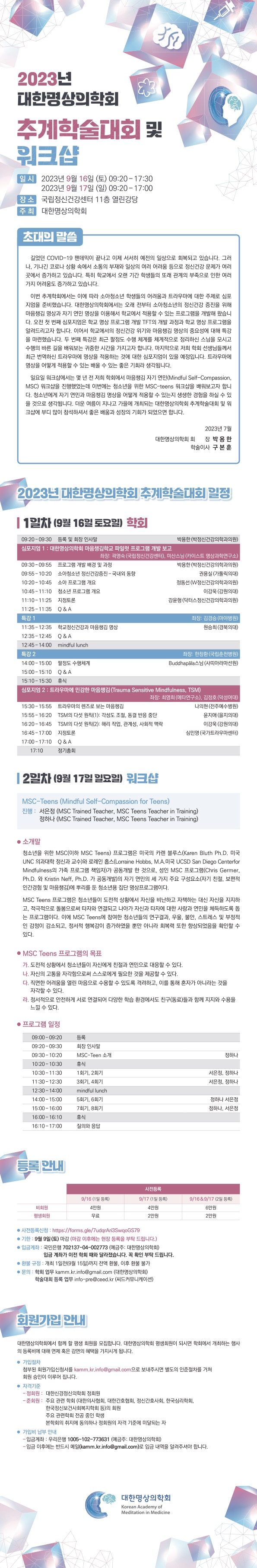 2023년 대한명상의학회 추게학술대회 및 워크샵 안내드립니다.