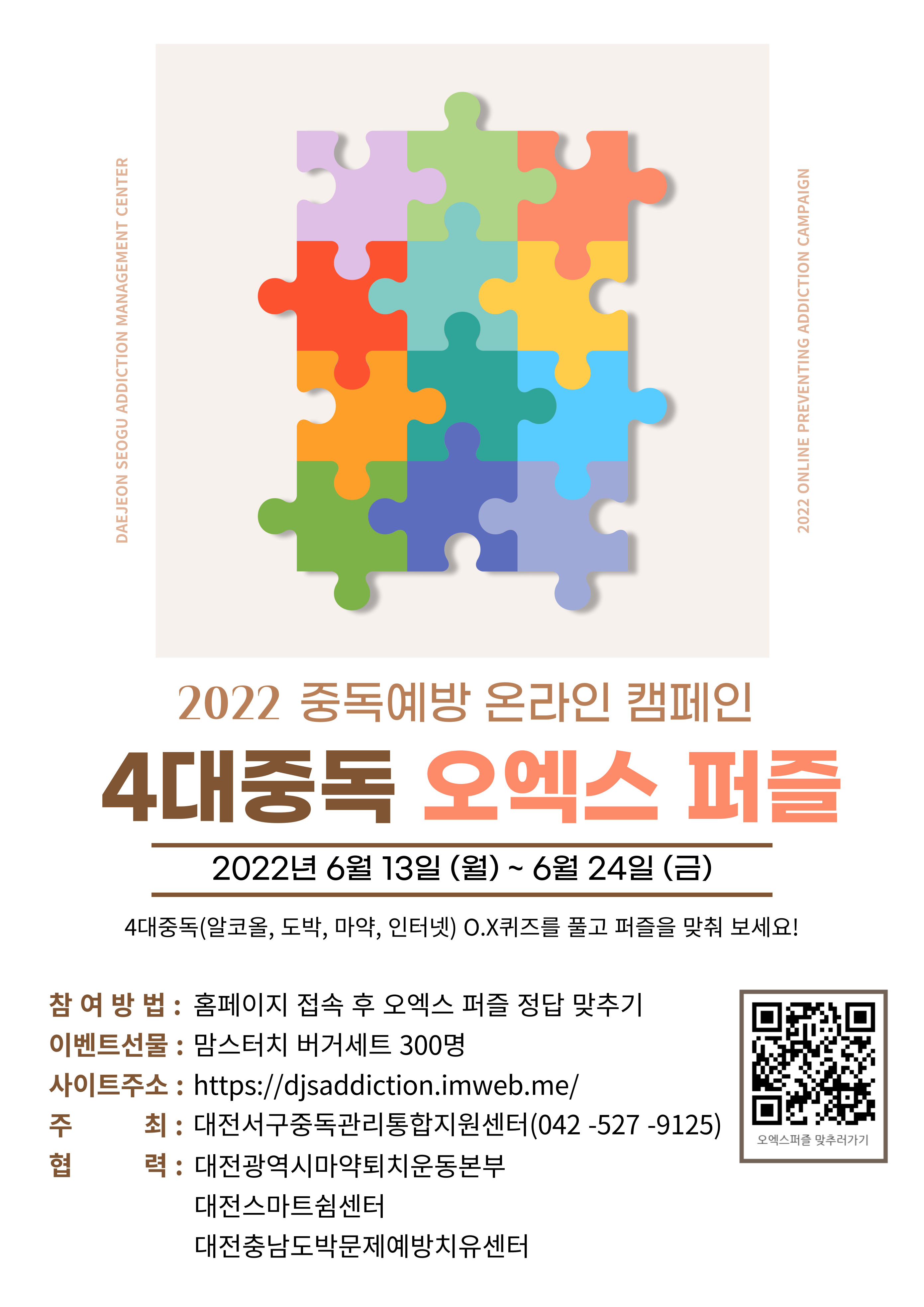 2022년 중독예방 온라인 캠페인 [4대중독 오엑스 퍼즐]을 실시하여 포스터를 발송해 드립니다.