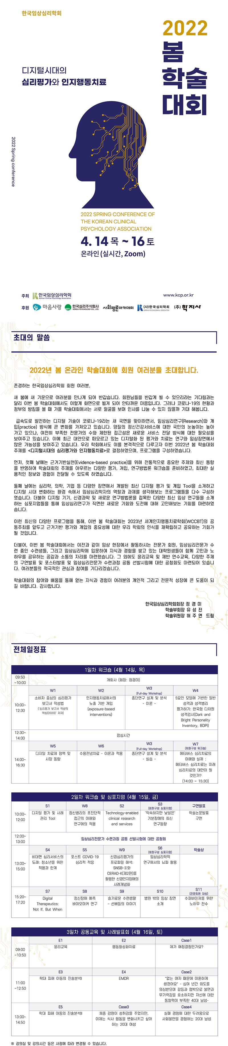 [한국임상심리학회] 2022 봄 학술대회 (온라인) 개최 안내