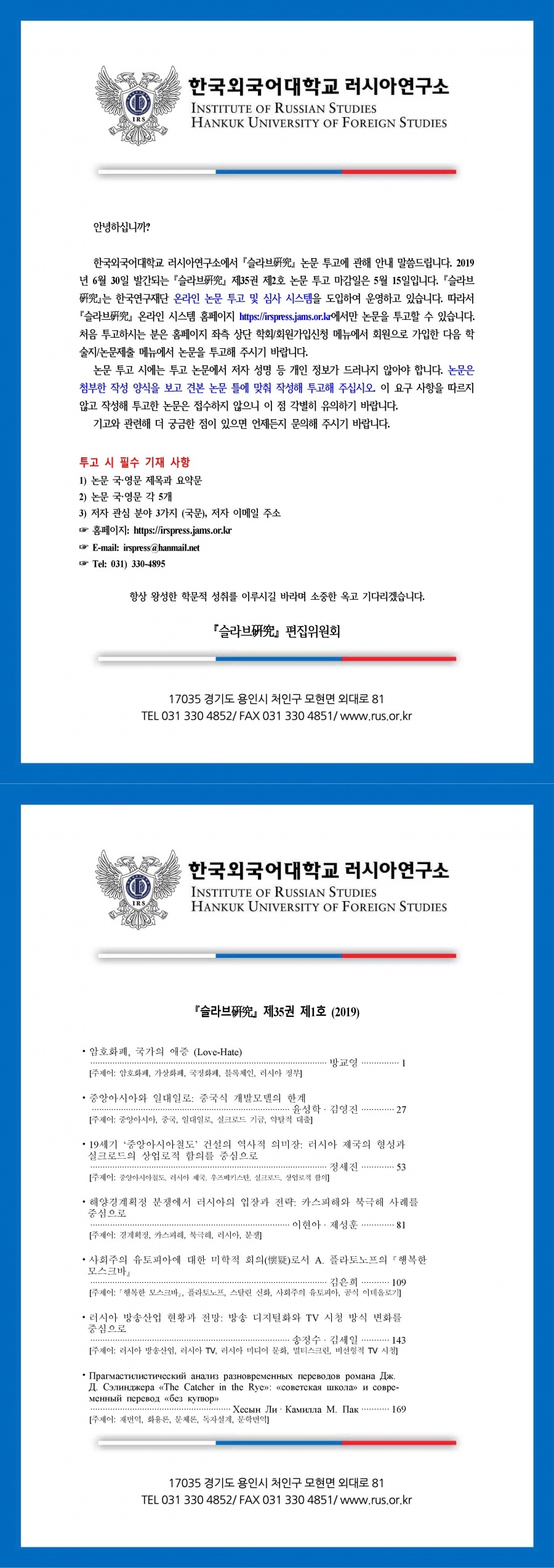 슬라브연구 35권 2호 논문 투고 안내