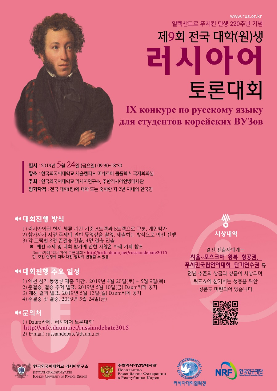 제9회 전국 대학(원)생 러시아어 토론대회 개최 안내