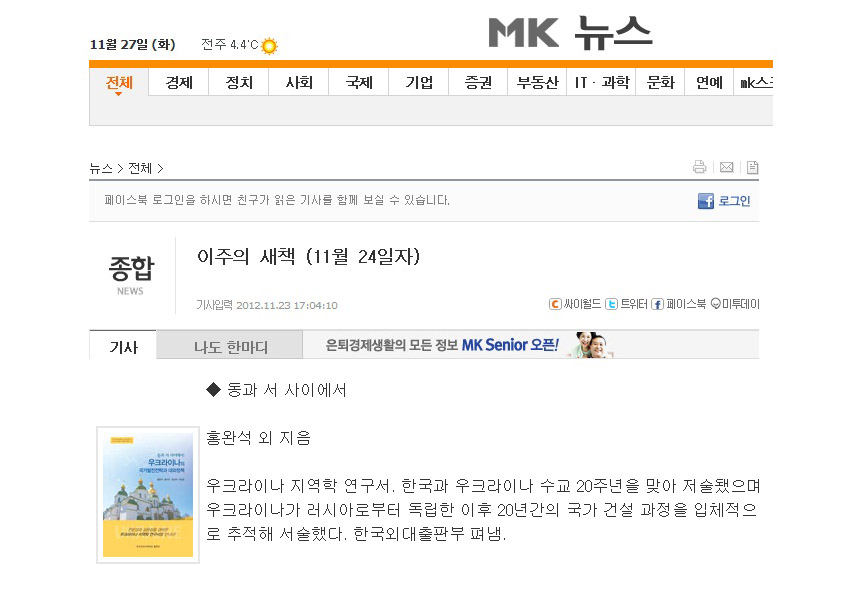 [언론보도][홍완석] 이주의 새책 (11월 24일자) - MK 뉴스 (2012.11.27)