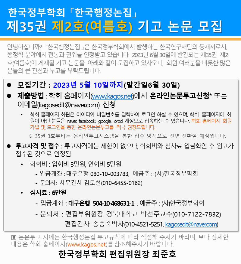 한국행정논집 35권 2호 논문기고 안내-기간연장