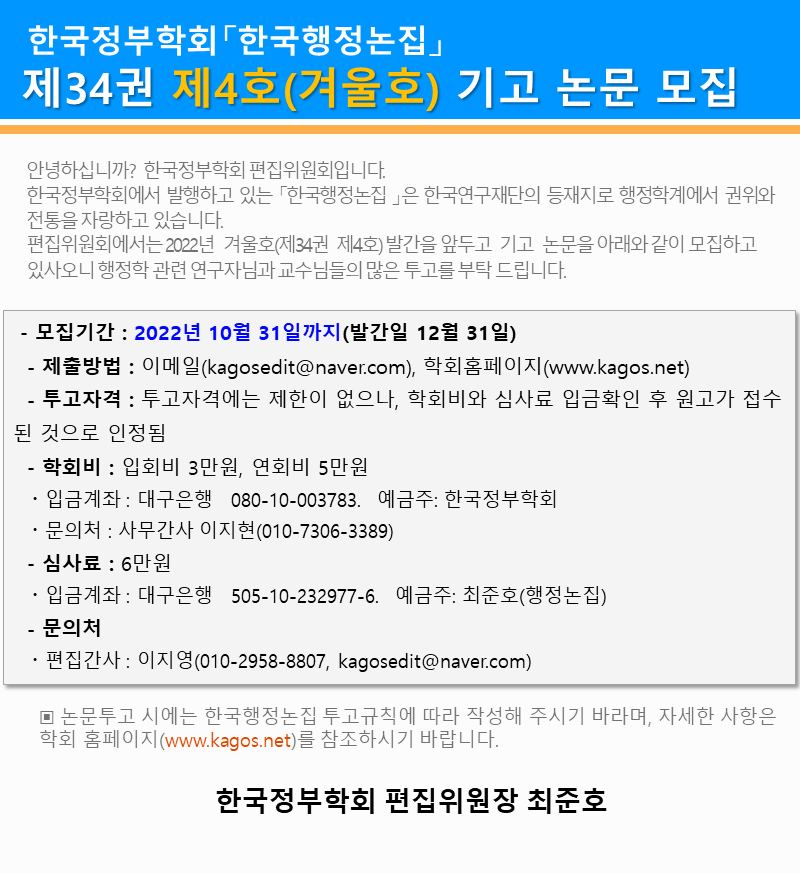 한국행정논집 34권3호 기고 안내-기간연장-]