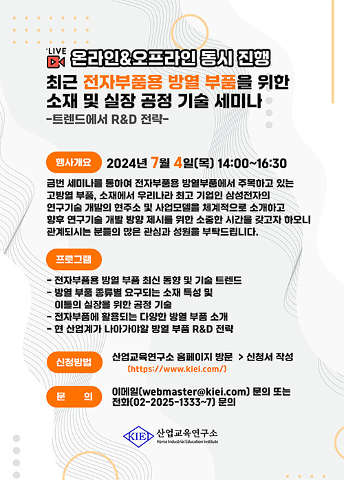 [산업교육연구소]최근 전자부품용 방열 부품을 위한 소재 및 실장 공정 기술 세미나