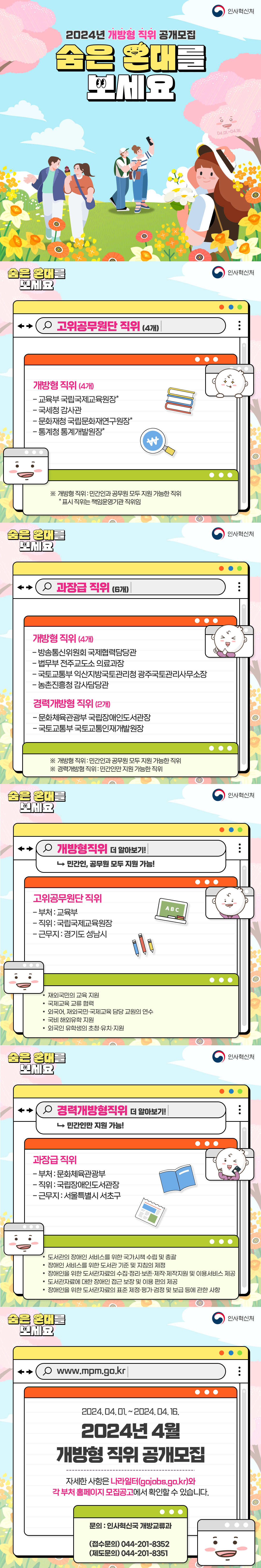 기타 문의는 인사혁신처 개방교류과 김상효 주무관(044-201-8352)에게 문의 바랍니다.