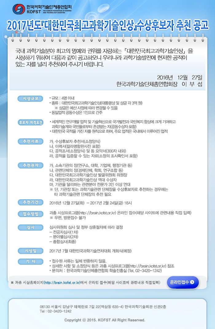 [외부] 2017년 대한민국최고과학기술인상 수상후보자 추천