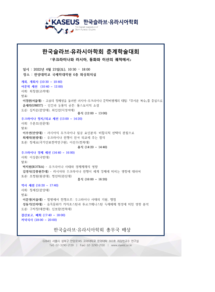 2022년 춘계학술대회 개최 안내