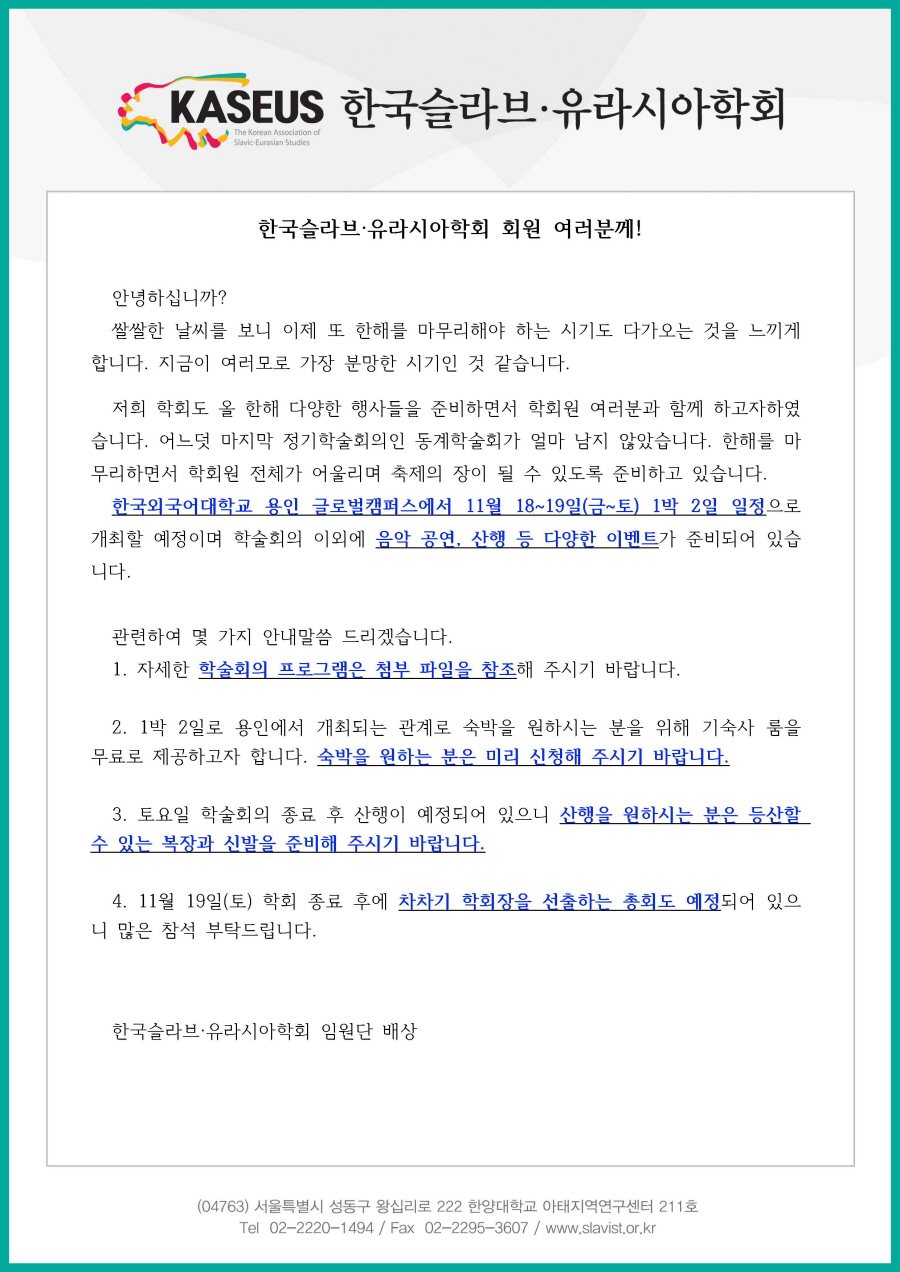 동계 정기 학술회의 안내