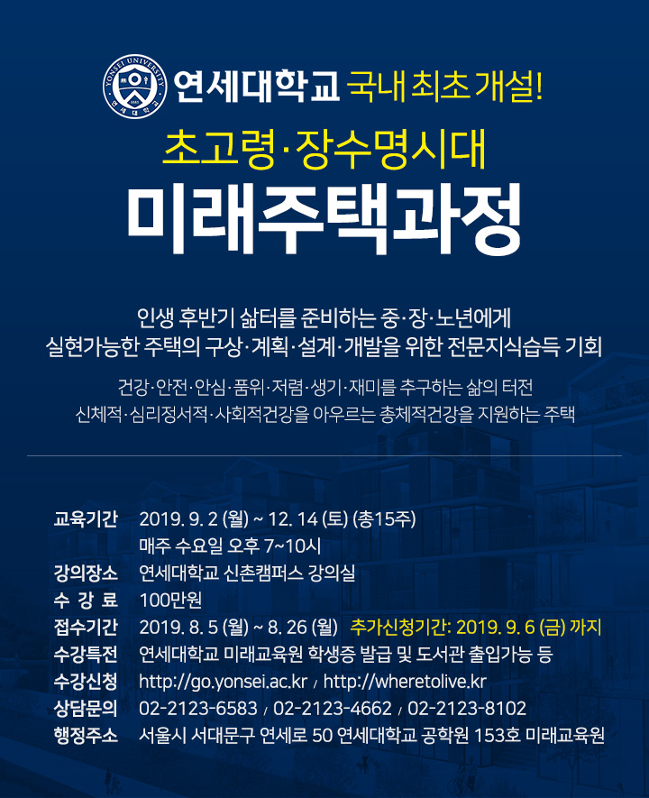 ※홍보※ 연세대학교 미래교육원 미래주택과정 강의개설(접수기간 연장)