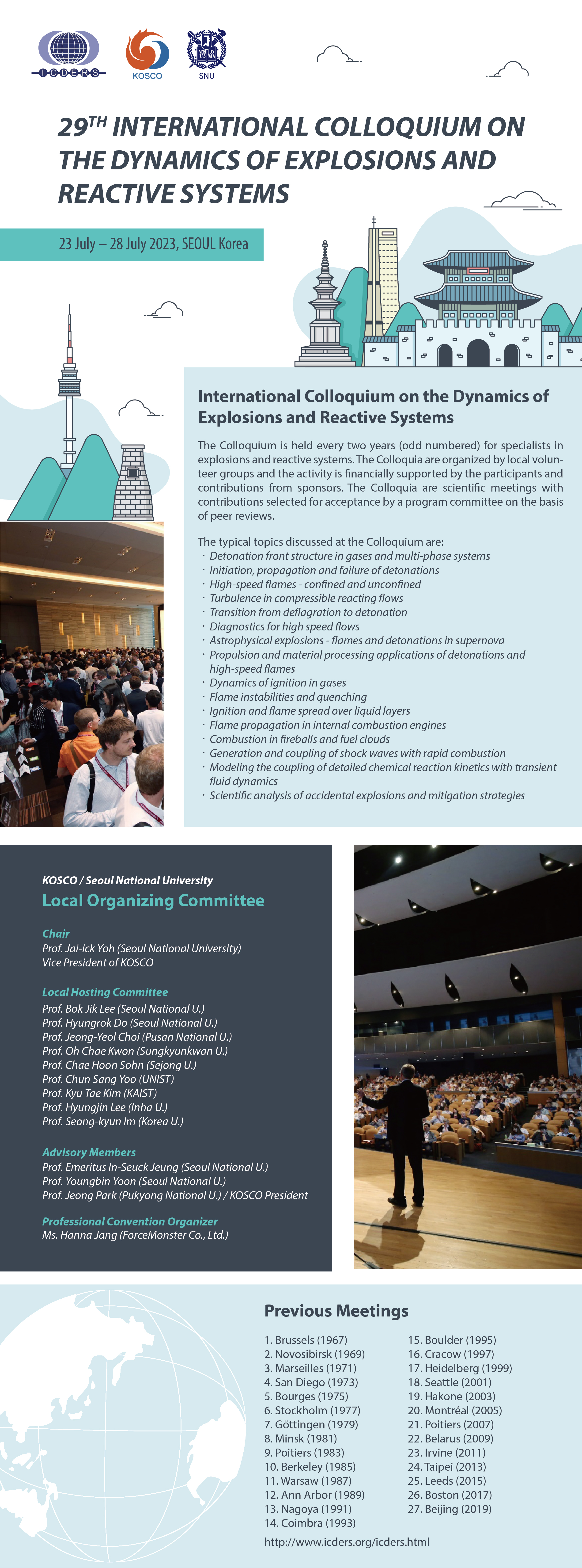 ICDERS 2023 국제학술대회를 한국연소학회가 서울 유치에 성공하여 안내드립니다!