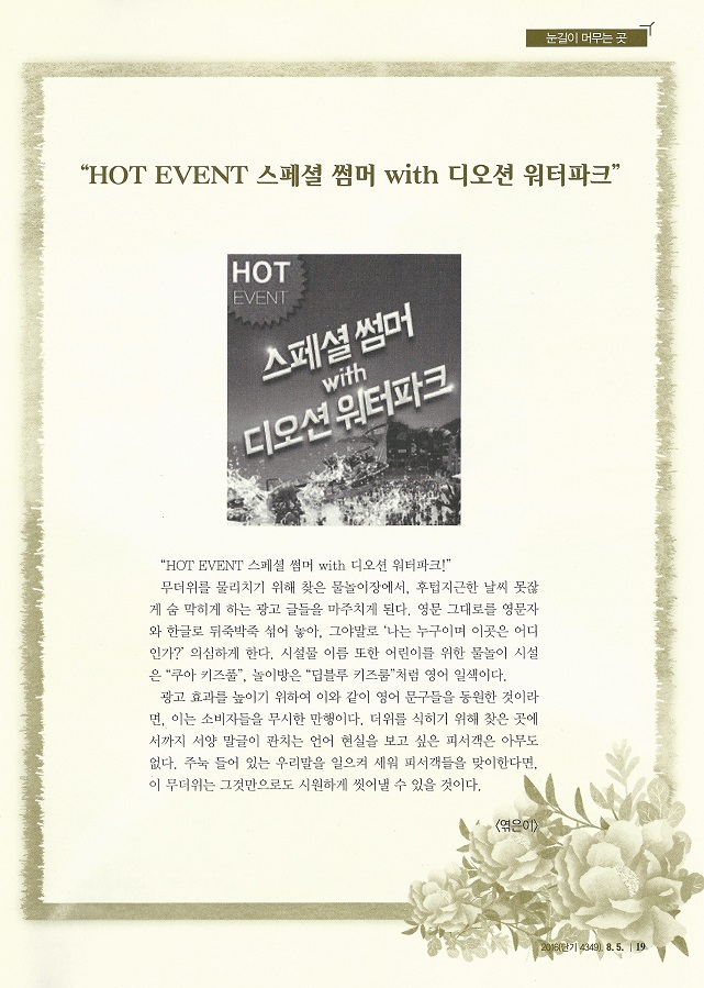 "HOT EVENT 스페셜 썸머 with 디오션 워터파크"(한글 새소식 제528호)