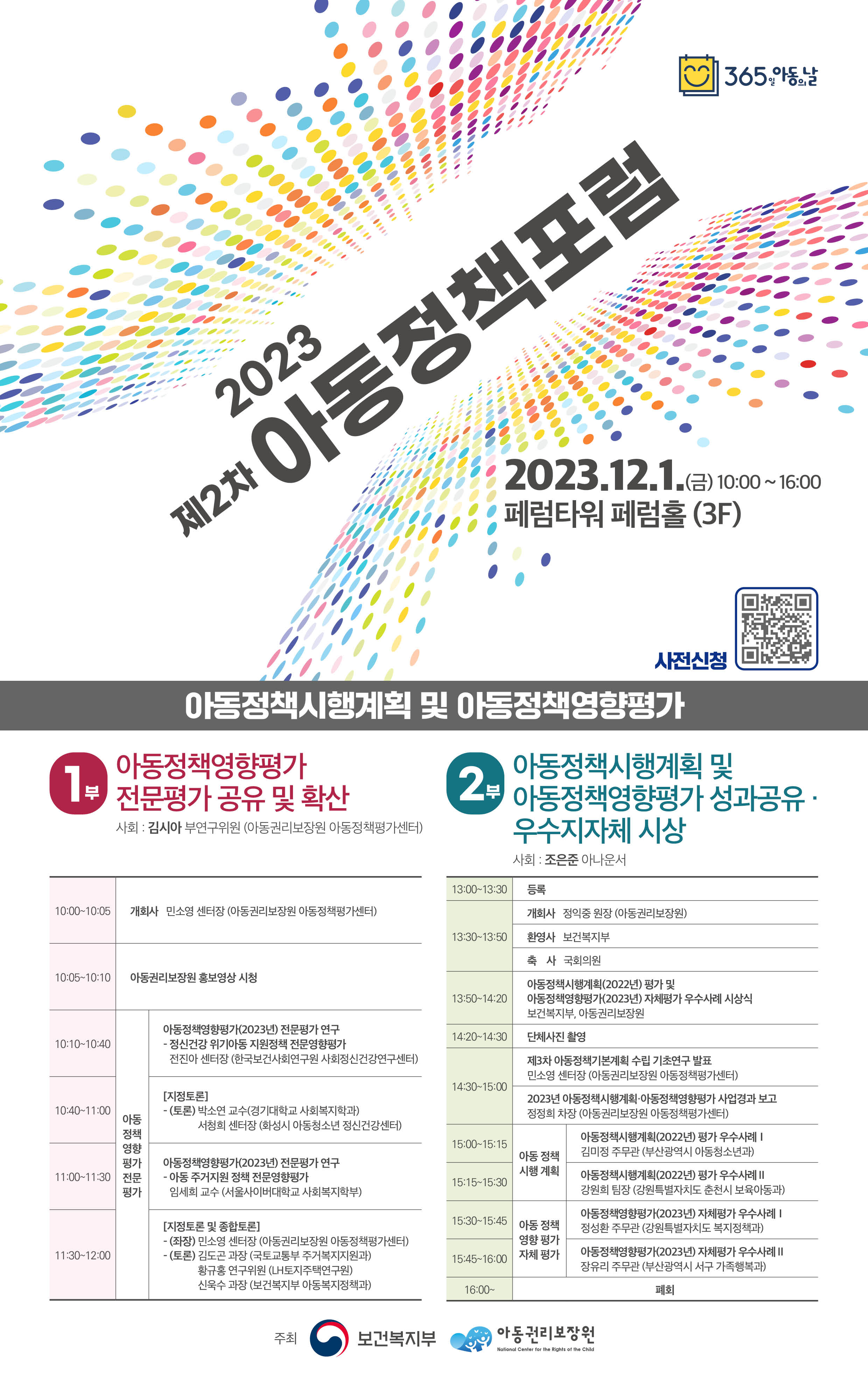 본 포럼에서는 중앙부처 및 지자체 평가결과와 아동정책영향평가 연구결과를 발표하며,