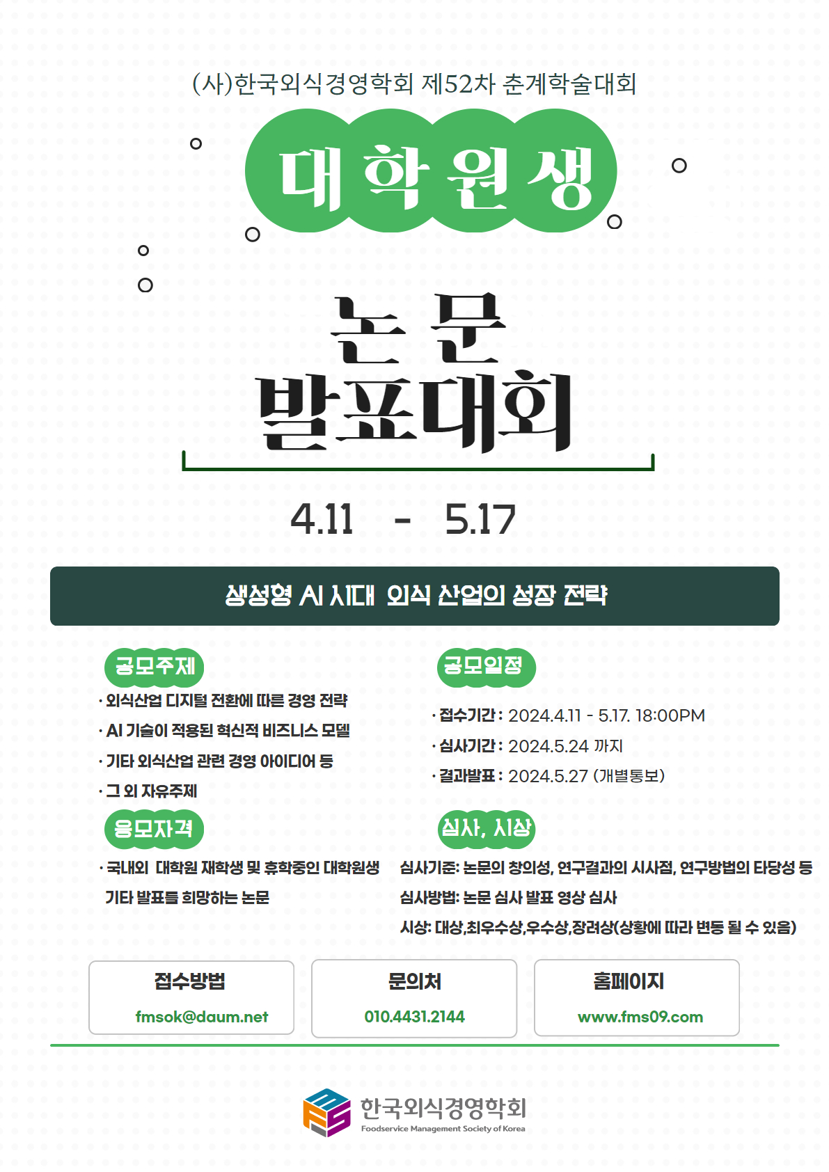 (사)한국외식경영학회 제52차 춘계학술대회가 다음과 같이 개최됩니다.