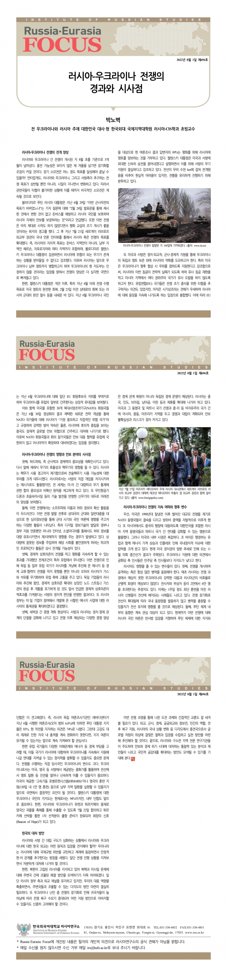 제696호 러시아-우크라이나 전쟁의 경과와 시사점