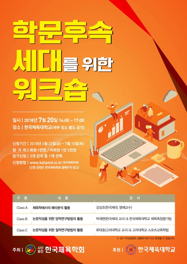 한국체육학회에서 주최하는 '학문후속세대를 위한 워크숍' 관련하여 안내입니다.