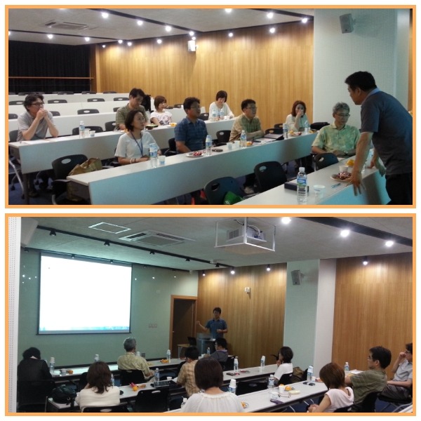 (2) 2014년 9월20일(토)에 개최 예정인 제30회 학술발표대회 준비상황에 관한 강석우 부회장님의 보고장면과 내년에 개최될 제31회 학술발표대회와 관련된 기획발표 주제에 대해 사카이 마유미 부회장님의 보고장면.