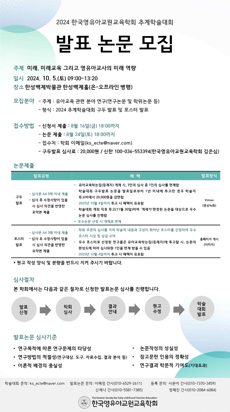 [한국영유아교원교육학회] 2024 추계학술대회 원고모집 및 일정안내