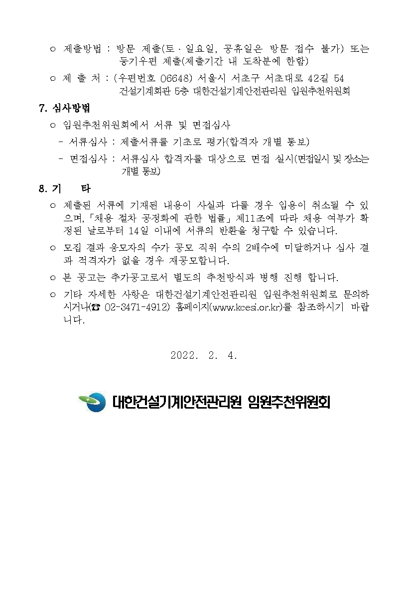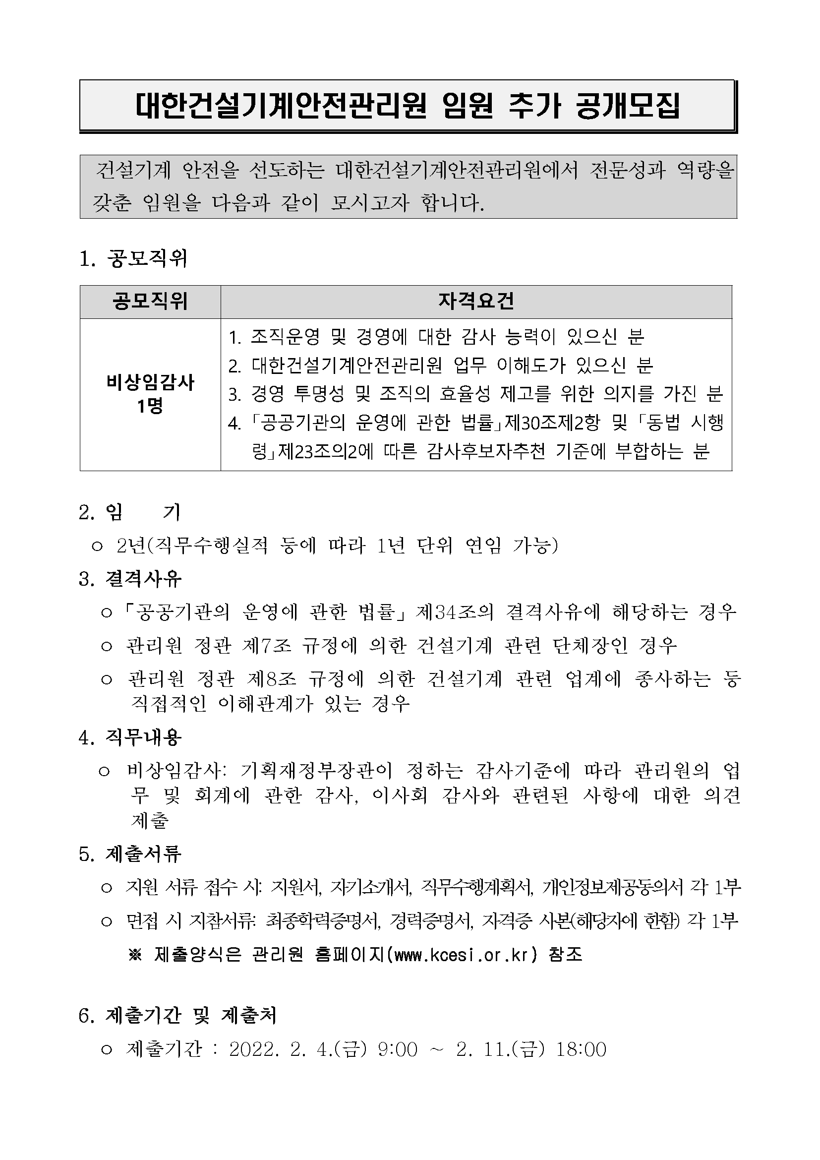 [대한건설기계안전관리원] 비상임감사 추천의뢰