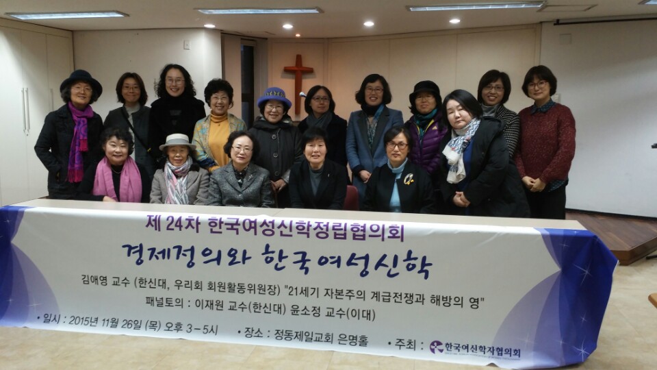 이번 정립협의회는 '경제정의와 한국여성신학'라는 주제 아래 사회 이은선 교수(세종대, 우리회 신학위원장)의 사회로 김애영 교수(한신대, 우리회 회원활동 위원장)의 발표(제목 '21세기 자본주의 계급전쟁과 해방의 영')와 이재원 교수(한신대), 윤소정(이화여대)의 논찬 순으로 진행되었습니다.