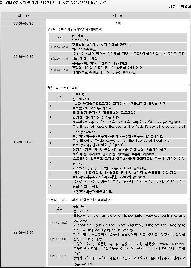 2012전국체전기념 학술발표회 한국발육발달학회 6일 분과 세미나 일정 안내(10.06.)