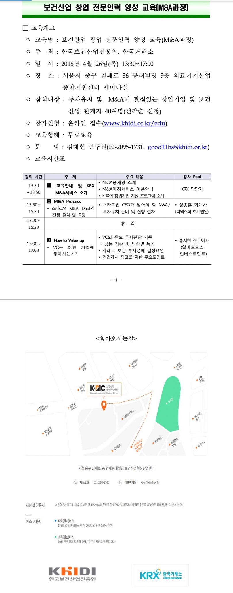[한국보건산업진흥원]보건산업 창업 전문인력 양성 교육(M&A과정) 교육생 모집