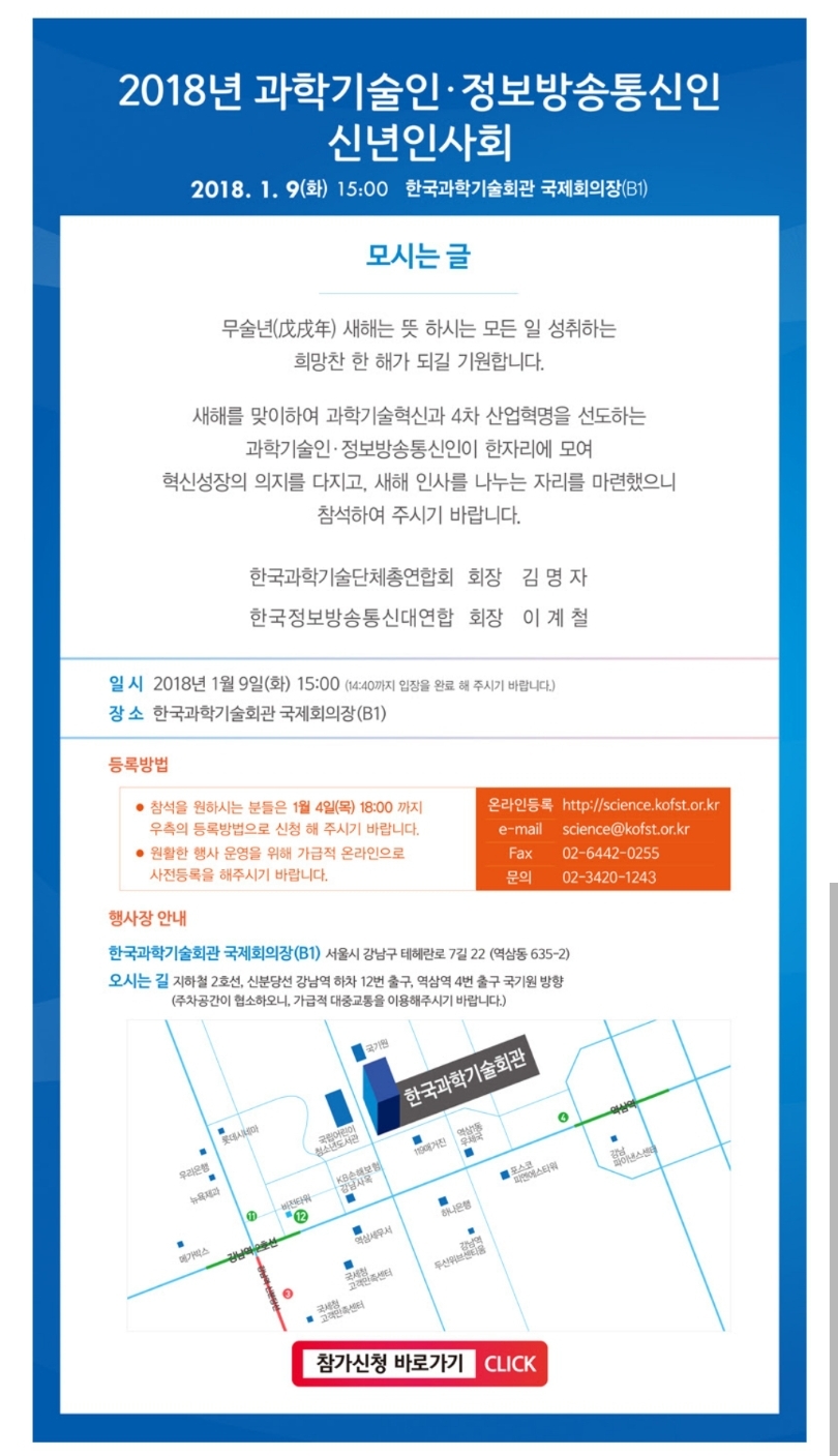 2018년 과학기술인ㆍ정보방송통신인 신년인사회 초청