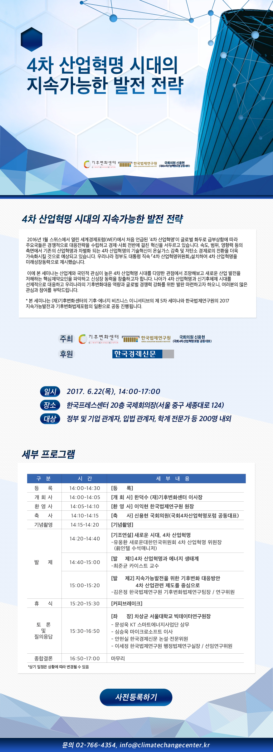 '4차 산업혁명 시대의 지속가능한 발전전략' 세미나 안내
