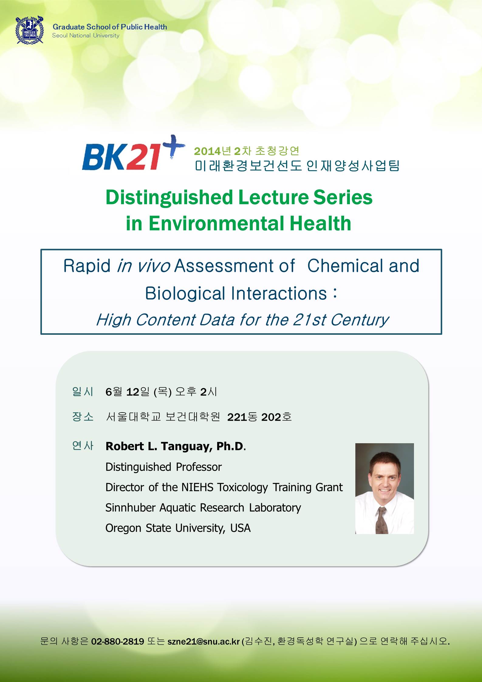 문의 사항은 02-880-2819 또는 szne21@snu.ac.kr (김수진, 환경독성학 연구실) 으로 연락해 주십시오.
