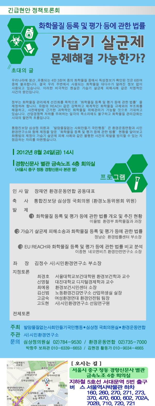 [환경운동연합] 화학물질 등록 및 평가 등에 관한 법률, 가습기 살균제 문제해결 가능한가 정책토론회 안내
