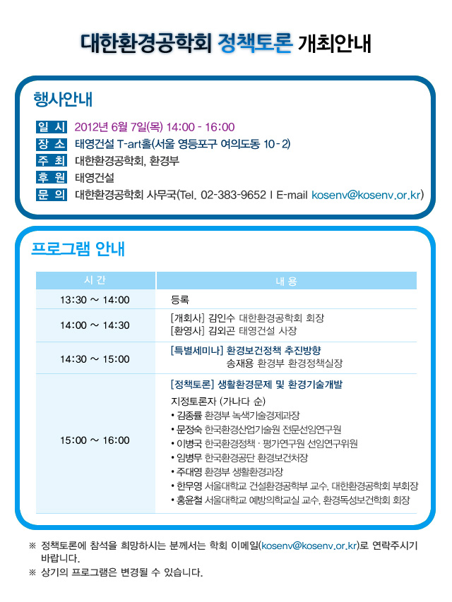 대한환경공학회 정책토론회 개최 안내