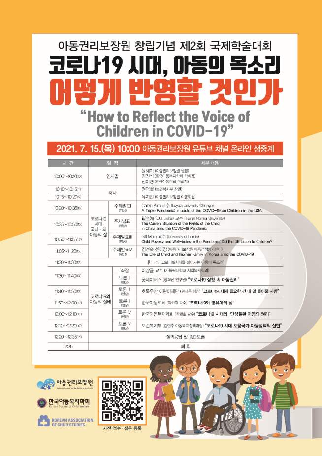 아동권리보장원은 창립 2주년 기념 국제학술대회를 통해 코로나19 상황 속 아동권리에 관한 국제적 동향을 살피고국내·외 전문가들의 활발한 교류를 촉진할 수 있는 발판을 마련하고자 합니다.