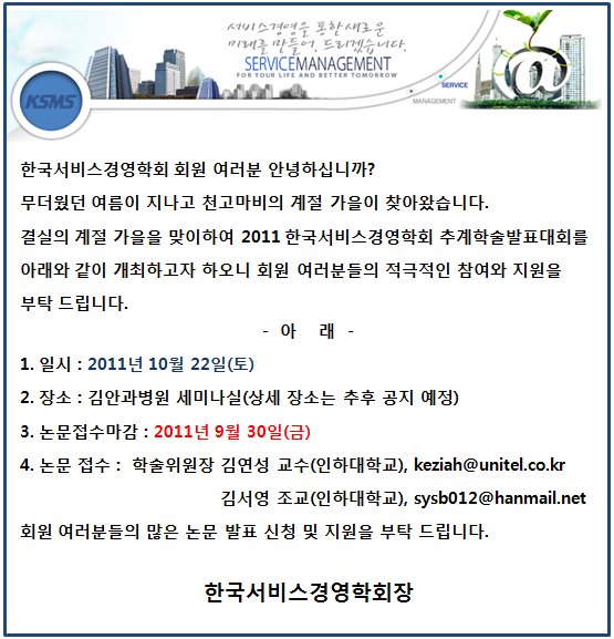 2011 한국서비스경영학회 추계학술발표대회 안내