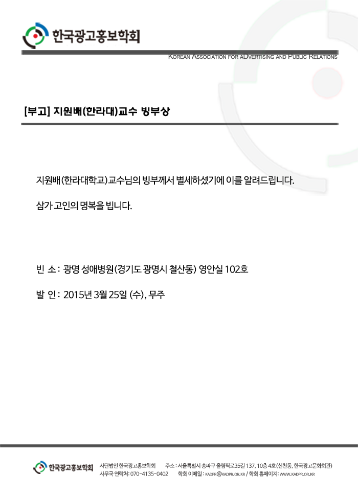 [부고] 지원배(한라대)교수 빙부상