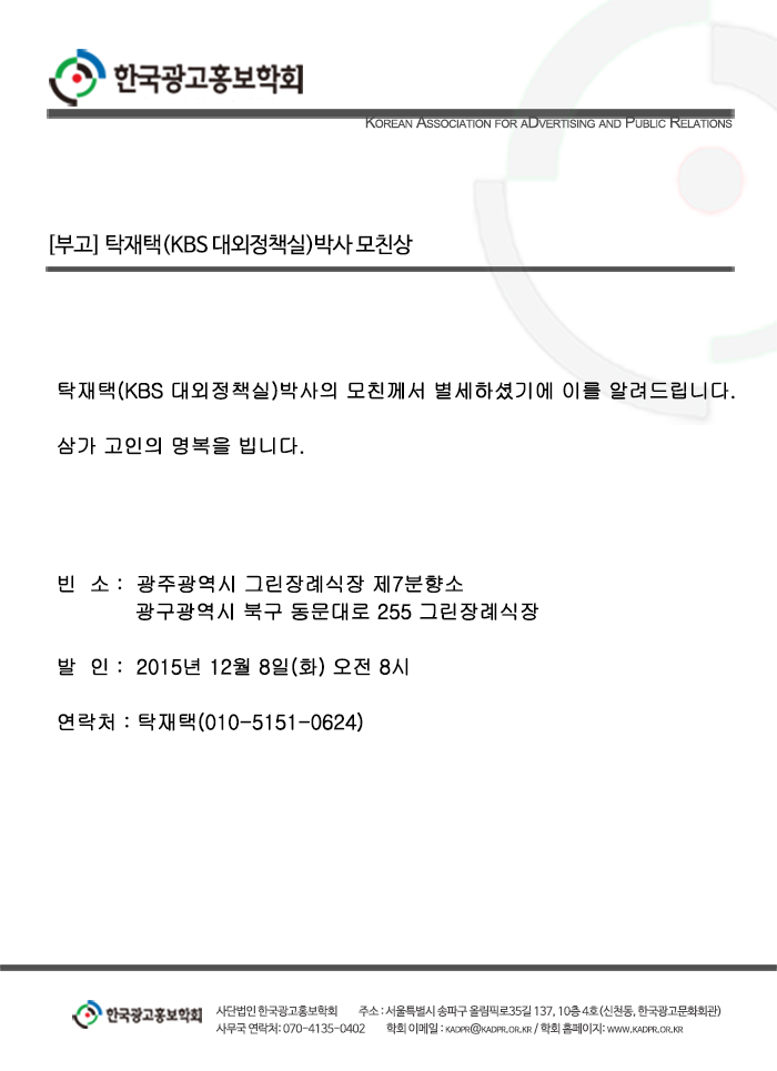 [부고] 탁재택(KBS 대외정책실)박사 모친상