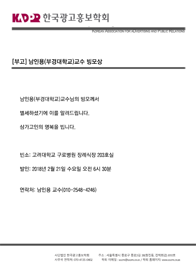 [부고] 남인용(부경대학교)교수 빙모상
