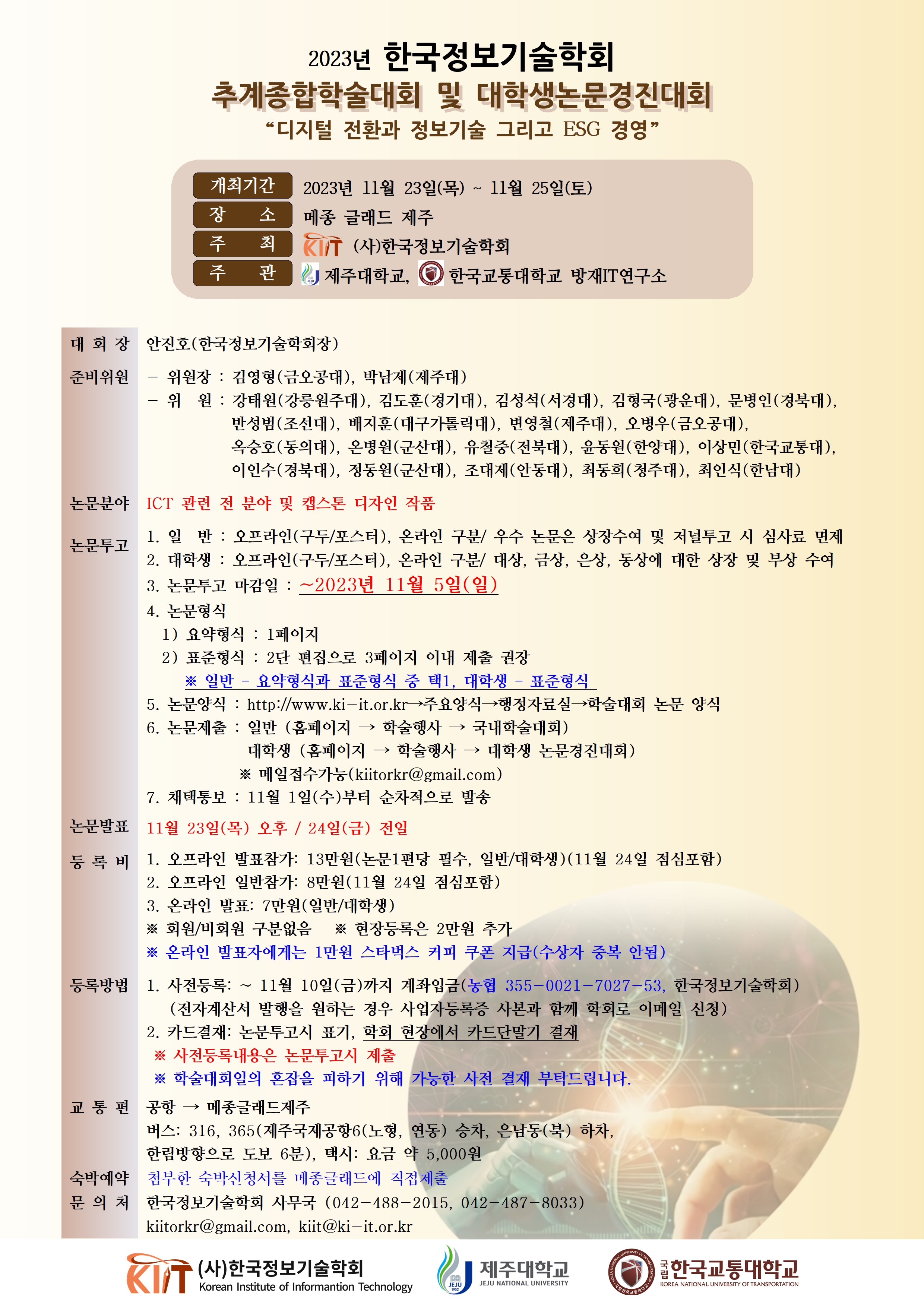 2023년 한국정보기술학회 추계종합학술대회 및 대학생논문경진대회 안내