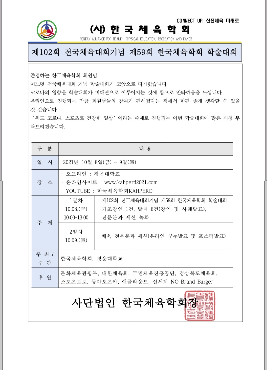 제 102회 전국체육대회기념 제 59회 한국체육학회 학술대회 안내